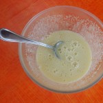 In a mixing bowl, beat the egg white and dash of salt to fairly hard peak.